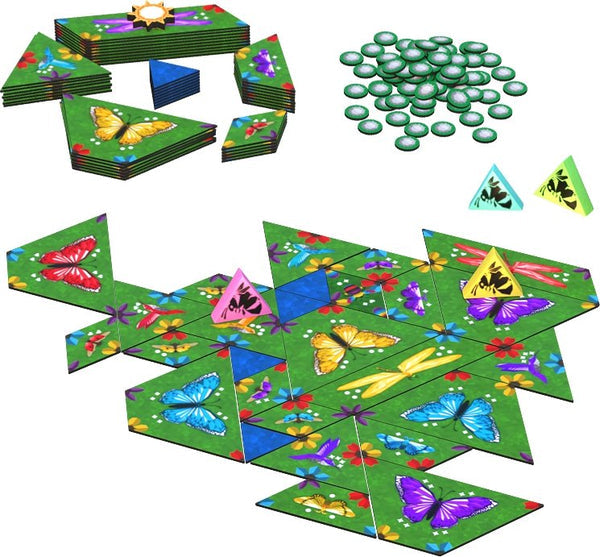 With each turn, you will place uniquely shaped tiles, aiming to match petals and grow flowers. But it doesn't end there - it's about nurturing the ecosystem by providing the right flowers to each fluttering critter, spreading their rich pollen throughout the meadow. You will accomplish this by strategically enclosing tiles, boosted by clever use of your bee token.