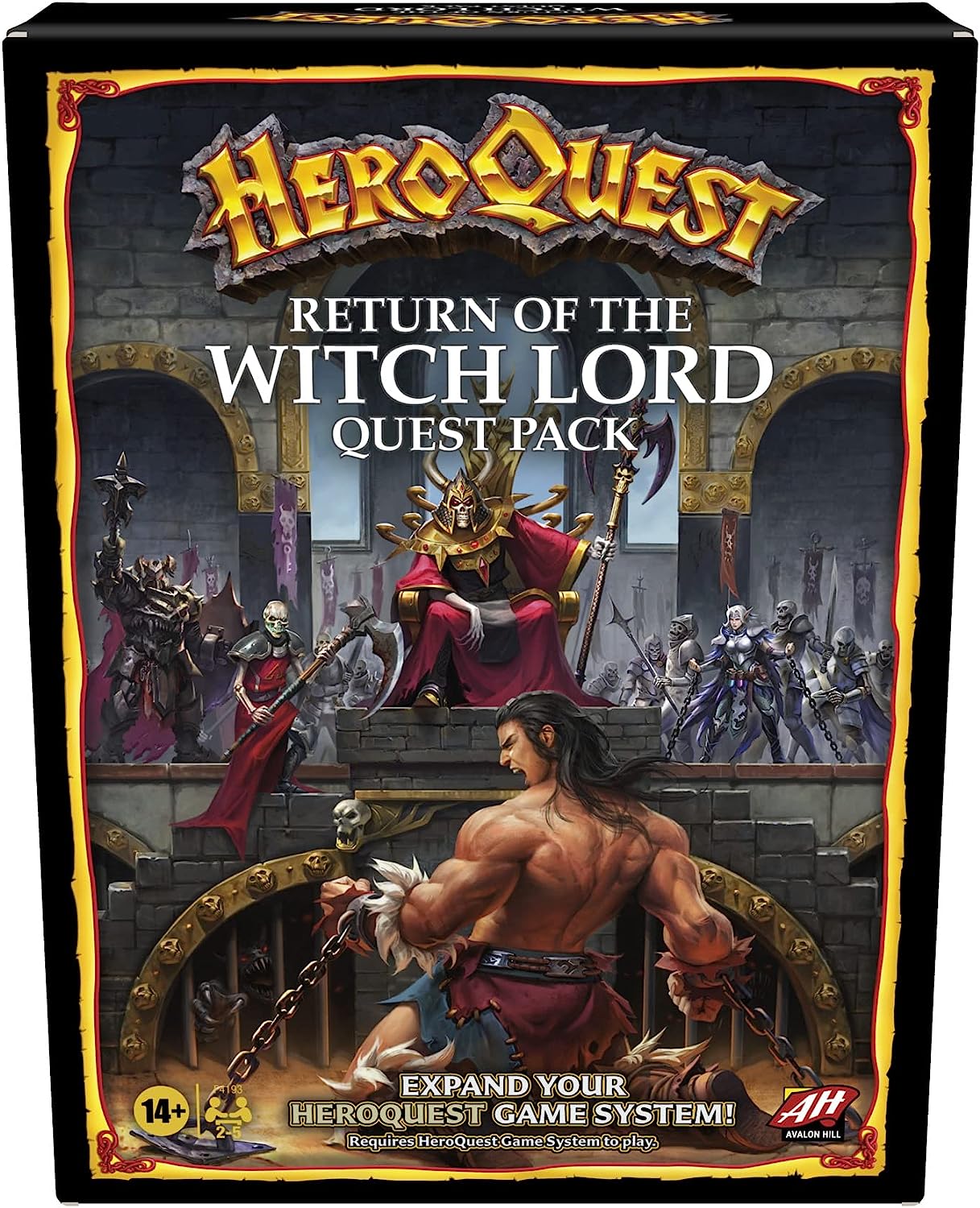 Revisit and delve deeper into the rich story of the HeroQuest dungeon crawling adventure game. With the Return of the Witch Lord expansion, players work together to destroy the Witch Lord, who hides from the light of day with his army of the undead. Players can immerse themselves in the fantasy with the stunning artwork, 16 detailed miniatures, full-color tiles, and 10 exciting quests not seen in the initial HeroQuest Game System. (Requires HeroQuest Game System to play. Sold separately.) The game has limitless replayability, and you can also build their own quests and create their own stories. Gather friends together for an exciting night of tabletop gameplay in an epic battle of good and evil. The game is for 2-5 players, ages 14 and up. Avalon Hill and all related trademarks and logos are trademarks of Hasbro, Inc.