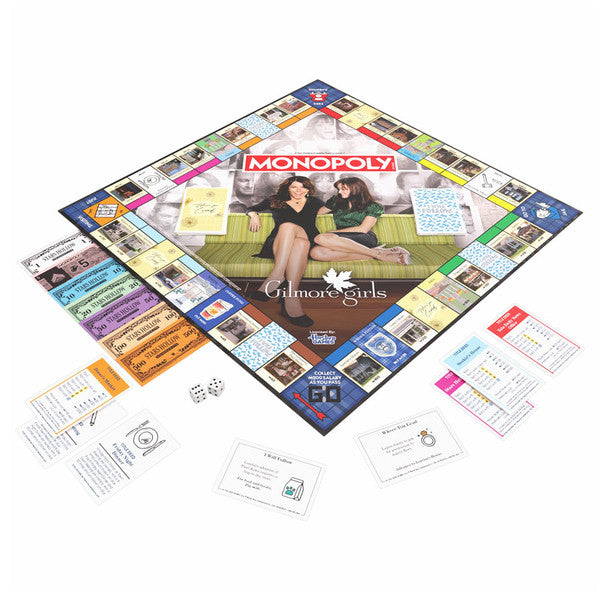 Visit your favorite places in and around Stars Hollow in MONOPOLY®: Gilmore Girls edition! Grab your favorite custom token from among the Dragonfly Room Key, Luke’s Baseball Hat, School Newspaper, Picnic Basket, Cup of Coffee, or First Snowflake. Travel around town to buy iconic properties like Kim’s Antiques, Doose’s Market, and the Independence Inn. “Where You Lead” and “I Will Follow” cards will have you reliving some of your favorite moments. It is a celebration of the people and places in Stars Hollow every time you pass GO!