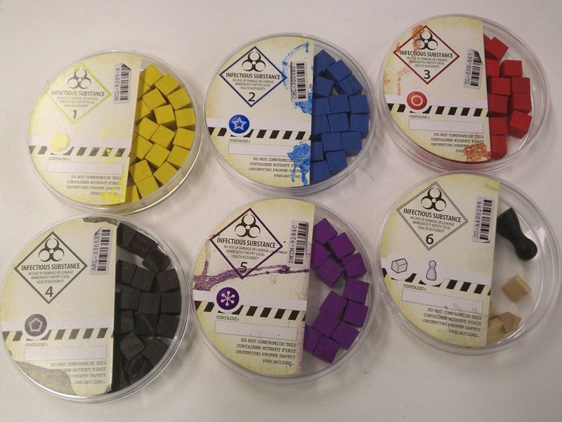 You've found the cures to four deadly diseases. But what happens when those diseases get stronger? Worse yet, what happens when someone spreads them intentionally?! Return to the world of Pandemic with On the Brink and prepare for the unexpected. The three challenges included with this expansion evolve the base game mechanics in exciting ways. One disease might become a Virulent Strain and become more difficult to treat as the game goes on. Or you could introduce an unpredictable fifth disease with the Mutation challenge and watch it pop up in unexpected places. Finally, teamwork is even more important if a fifth player dons the mask of the Bio-Terrorist and spreads panic while moving secretly across the board. Try each challenge individually or combine them all for a major test!
