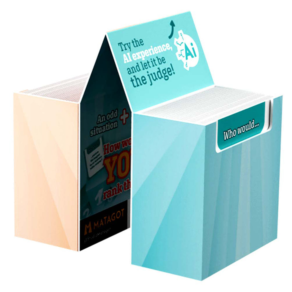2- One player is the Judge who takes a question card, reads it to themselves, and secretly decides how they want to rank the characters on the basis of the question. They then read the question aloud to the other players.
