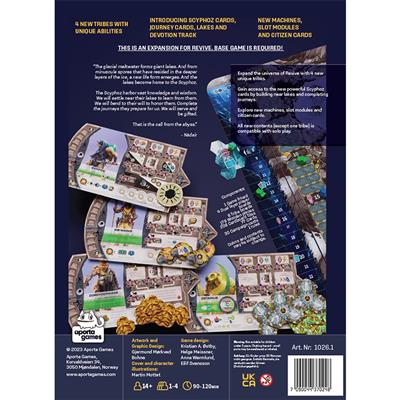 The Revive: Call of the Abyss expansion introduces the mysterious life form Scyphoz, which lives in the giant lakes that are formed by meltwater from the glaciers. By building near lakes, you gain devotion points, which let you access the new and powerful Scyphoz cards. You can also use the switch action to initiate journeys, sending out your citizen on missions to gain more devotion points.