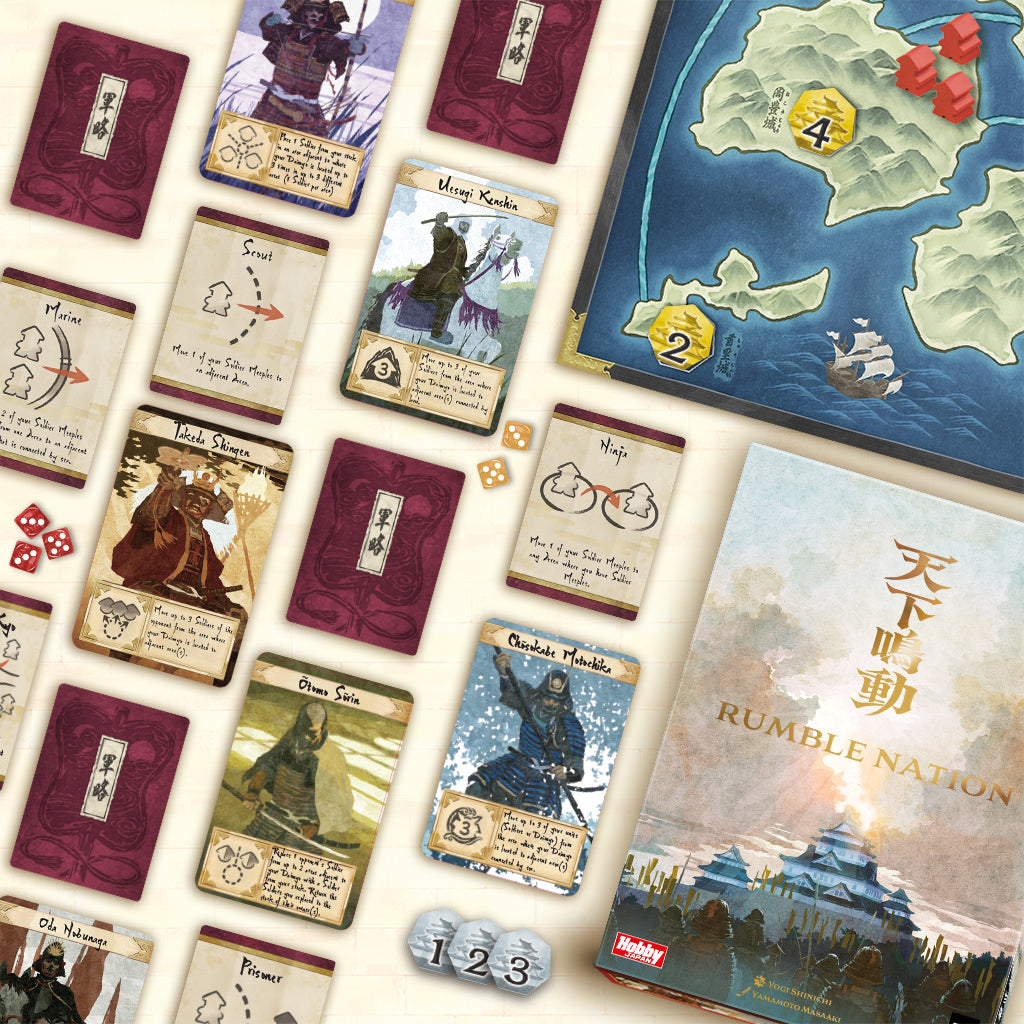 Take control of castles during the Sengoku Era! Roll 3 dice and place your soldiers strategically on the map to try