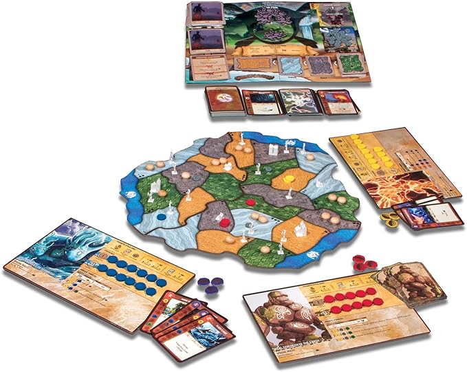 Spirit Island is a complex and thematic cooperative game about defending your island home from colonizing Invaders. Players are different spirits of the land, each with its own unique elemental powers. Every turn, players simultaneously choose which of their power cards to play, paying energy to do so. Using combinations of power cards that match a spirit's elemental affinities can grant free bonus effects. Faster powers take effect immediately, before the Invaders spread and ravage, but other magics are slower, requiring forethought and planning to use effectively. In the Spirit phase, spirits gain energy, and choose how / whether to Grow: to reclaim used power cards, to seek for new power, or to spread presence into new areas of the island.
