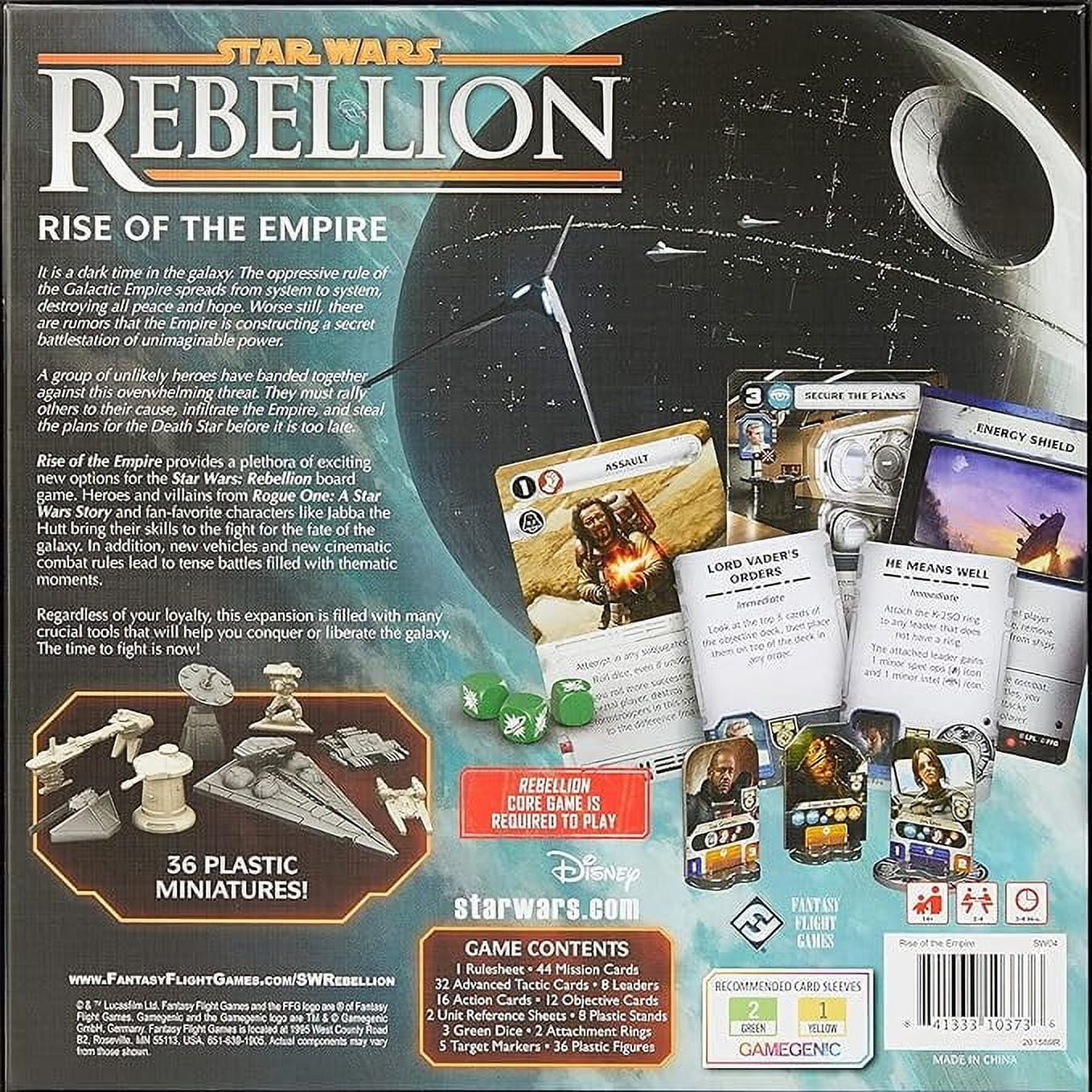 New leaders. New missions. New tactic cards that lead to more fully cinematic combats… Rise of the Empire is an expansion for Star Wars™: Rebellion inspired largely by Rogue One. And just as the movie provided new insight into the Galactic Civil War presented in the original Star Wars trilogy, Rise of the Empire adds new depth and story to your Rebellion game experience.