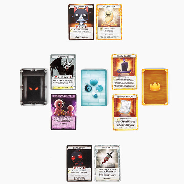 This is the Second Edition of The Binding of Isaac: Four Souls+. This was the first expansion to The Binding of Isaac: Four Souls and is contained in a tuckbox. This is the second edition that includes enhanced backgrounds and updated wording for clarity.