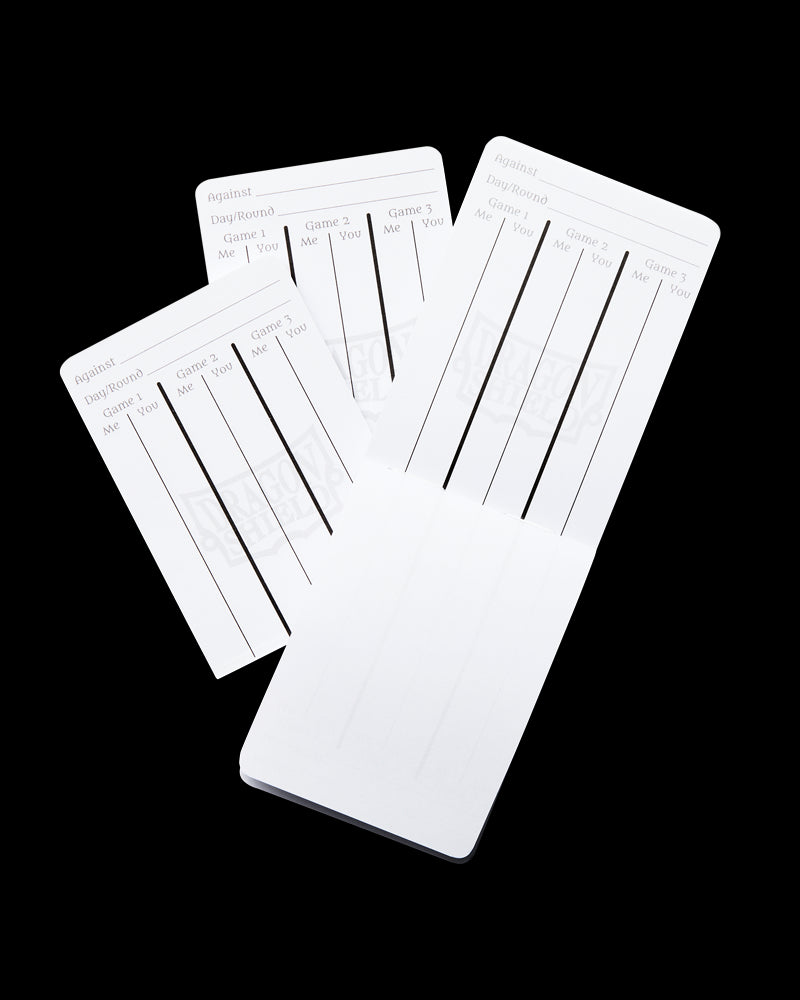 Refills for your Dragon Shield Life Ledger! Each pack contains three extra long scorepads with 34 pages each. Simply slide the backing into the plastic pocket on your Life Ledger and you are ready to go!