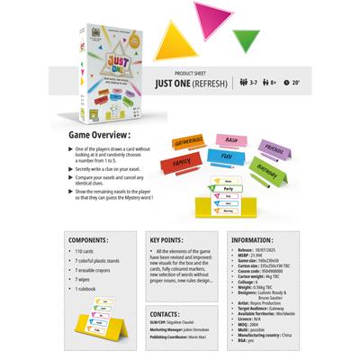 The cooperative party game returns! Help guess as many Mystery Words as possible. Think of the best clue, but choose carefully…since any identical clues cancel each other out! Enjoy this new version.