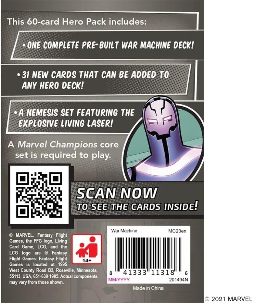This heavily-armored Avenger flies into battle in this expansion pack, which introduces War Machine as a brand-new playable hero, along with his fifteen signature cards. With a pre-built Leadership deck ready to play from the get-go, you’ll be eager to unload on your enemies with War Machine’s massive arsenal from the moment you open the box. With tons of powerful weapons and upgrades to play with, War Machine is an awesome hero that is perfectly at home on the front lines