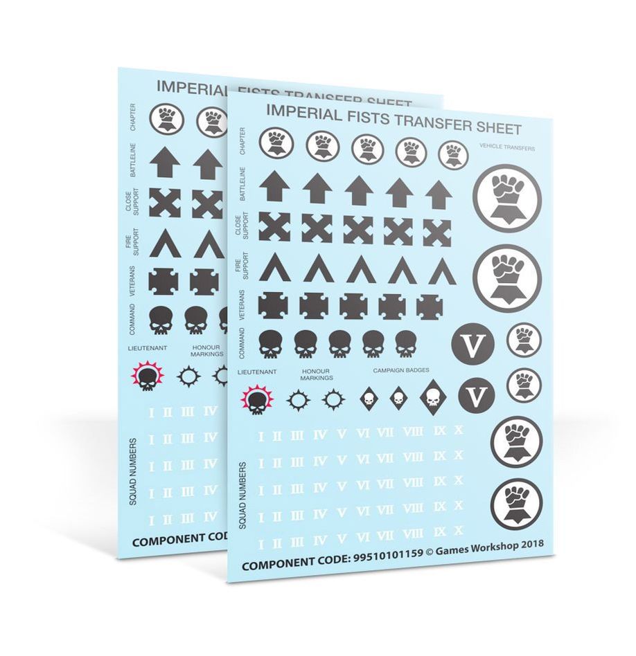 The set also contains 2 transfer sheets including Chapter, squad and vehicle transfers, as well as campaign badges, squad numbers, rank and honour markings.
