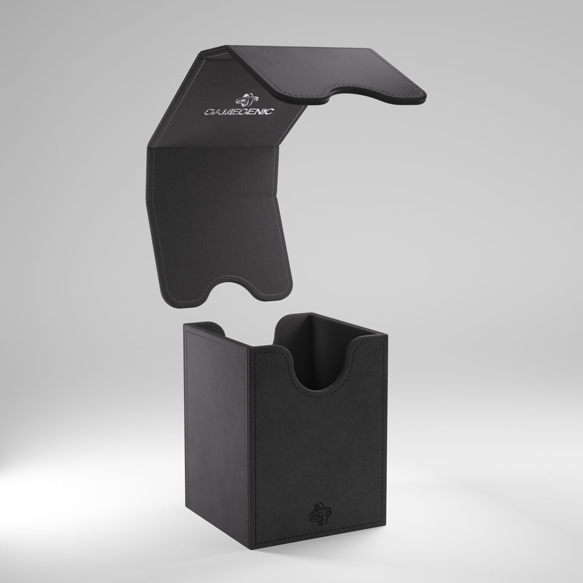 We created our Squire 100+ in an exclusive extra-large version that holds 100 regular double-sleeved cards and has extra space for additional tokens, or it fits perfectly a Commander Deck in thicker inner sleeves. The Convertible line is designed to present cards in new and unique ways. Remove the lid, attach it to the bottom or start tilting your box in a wide variety of ways. Powerful magnets keep it safely closed.