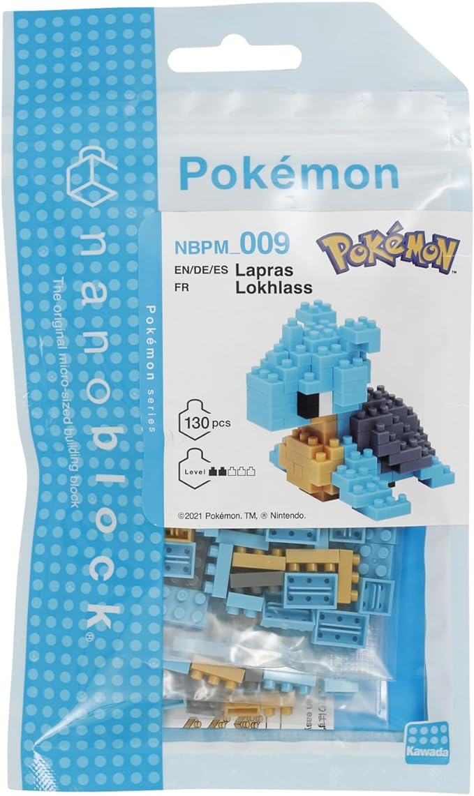 Lapras from Nanoblock's Pokemon Collection series stands approximately 1.8" tall and has 130 pieces