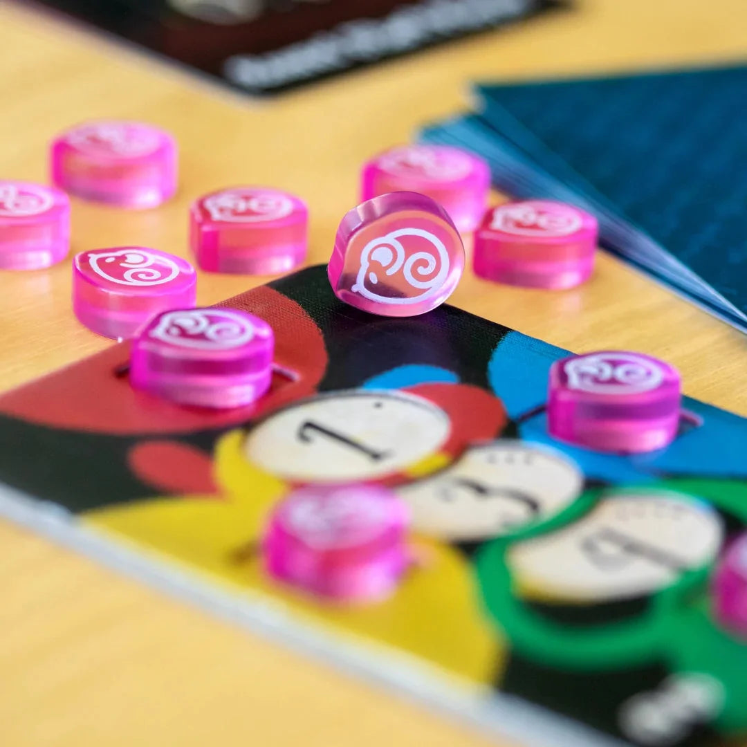 Cat in the Box: Deluxe Edition is the quintessential quantum trick-taking card game for 2 - 5 cool cats, where your card’s color isn’t defined until you play it! Hypothesize how many tricks you will win, and record your bid. Place tokens on the community research board as you play your hand, and connect large groups of tokens to score even more points. Plan your tricks carefully as you cannot claim the color of a card with the same number that has already been declared. Doing so would be pawsitively catastrophic as you have just created a paradox!