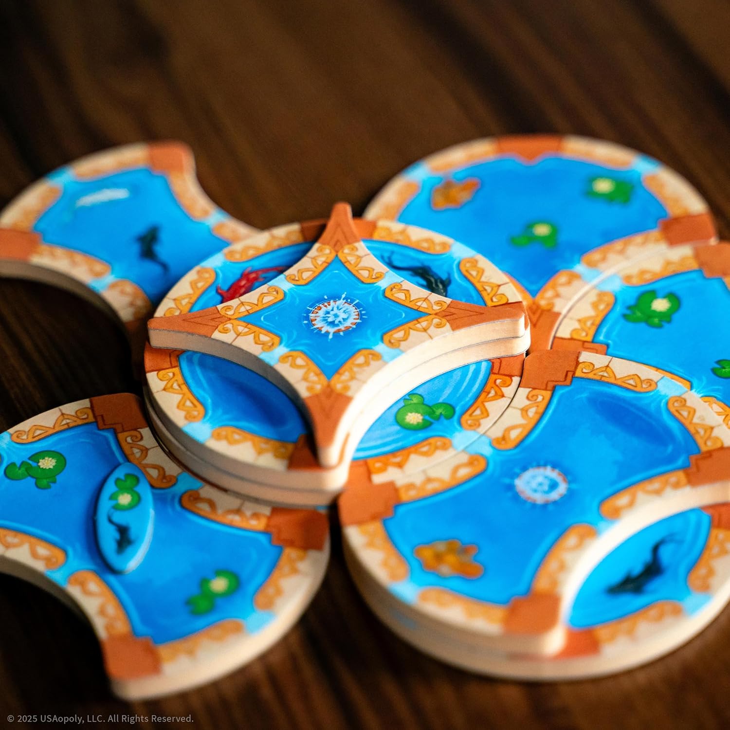 Fountains is a light strategy competitive tile-laying game where players become master Fountaineers working to build a magnificent fountain in the city of Florimelle.