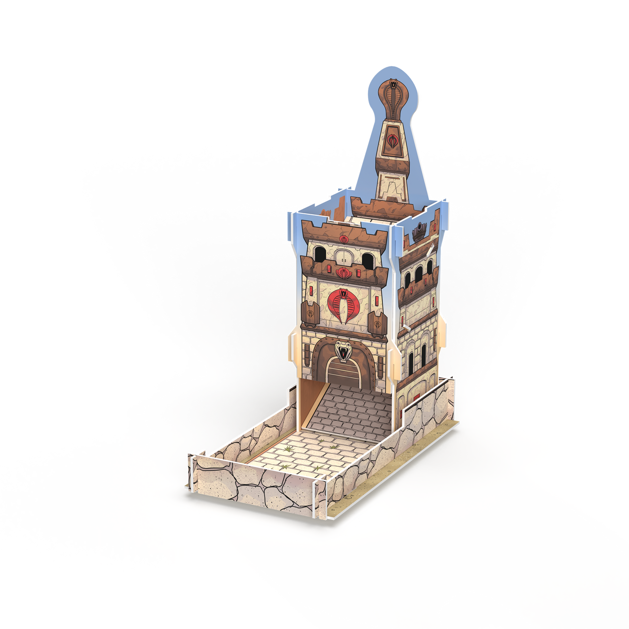 Introducing the ultimate accessory for your G.I. JOE gaming experience; A constructible cardboard dice tower! Build the Cobra Silent Castle to be used with the G.I. JOE Deckbuilding Game, G.I. JOE Mission Critical, or the G.I. JOE Roleplaying Game!