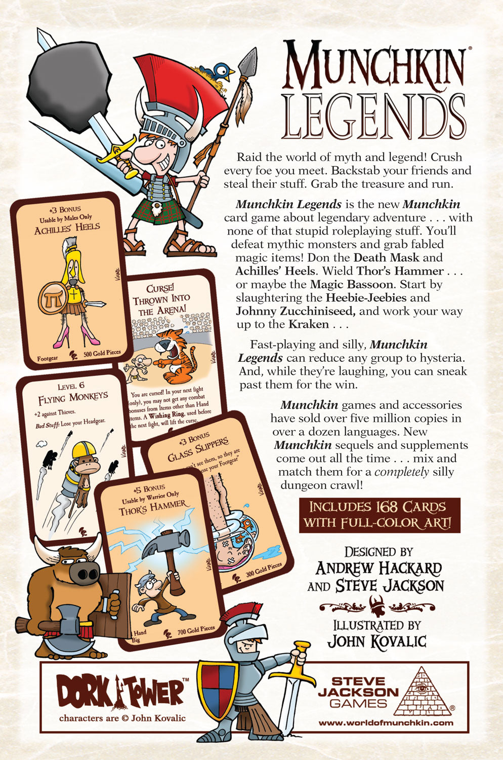 Prepare to fight the creatures of legend... and take their stuff! In Munchkin Legends, you’ll face mythical monsters and collect legendary treasures. Challenge the Boogie Man to a dance-off and cheat by wearing Achilles Heels. Hide from the spells of the Wicked Witch of the Midwest in your Bermuda Shorts of Invulnerability. And, if you think you’re up to it - release the Kraken! Munchkin Legends is a stand-alone set, but can be combined with the original Munchkin for a legendarily wacky game!