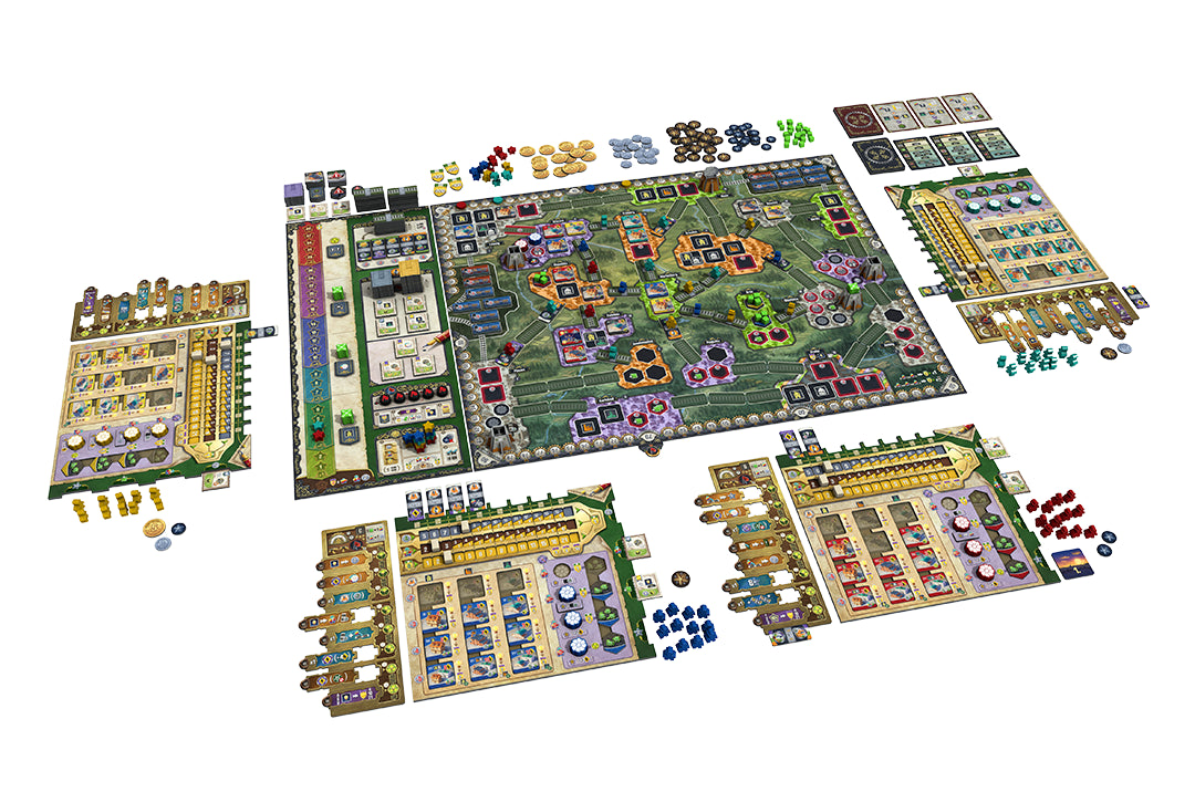 Nucleum is a heavy euro board game in which players take role of industrialists trying to succeed during the economic and technological boom of 19th-century Saxony, fueled by the invention and spread of the Nucleum (a nuclear reactor). Players earn victory points by developing their networks, building and powering urban buildings, securing contracts, and meeting milestones (randomized endgame goals). Each player also gets unique asymmetric technologies, giving them special powers when unlocked. Gameplay is continuous; players take turns one after another with no rounds or phases.