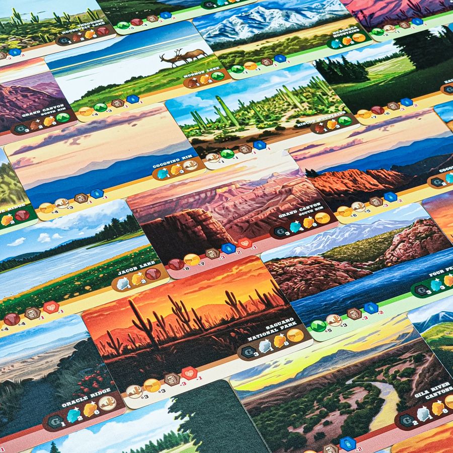 With a unique blend of gameplay strategies and stunning artwork, Trailblazer: The Arizona Trailtakes players through the sights and sounds of the endless Mountains, Canyons, Plateaus, and Deserts. Seek out the amazing variety of wildlife such as the Roadrunner and Javelina, while avoiding the dreaded Gila Monster. Perhaps you will sight the legendary Jackalope! Acquire as much Superstition Gold and Arizona Grit as you can while interacting with the incredible diversity of Terrain, Flora, and Fauna found in State 48… aka Arizona.