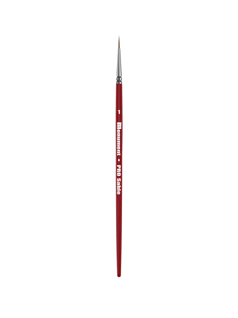 The next generation of Monument brushes is here! Our PRO Sables are made from the finest Sable and designed with a shape that will load a sizable amount of paint, while delivering perfect control with every stroke. Great “snap” and very fine points to put the finishing details on your models. Great for use with acrylics as well as other thin mediums, PRO Sables will allow you to blend easily and create the finest details at any scale.